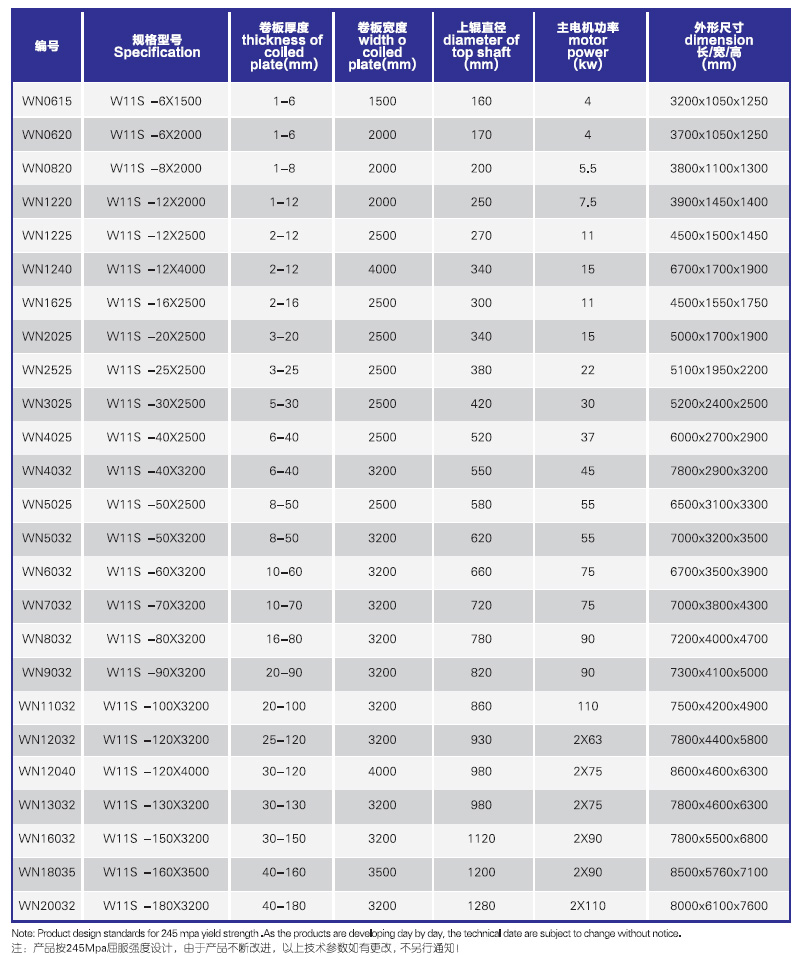 W11S 系列上輥萬能式卷板機,引進日本技術生產,上輥可以垂直升降也可以水平方向移動。采用上輥直接加壓方式,可以控制板材剩余直邊的長度和形狀。可以卷制多段弧形、方形、圓形、錐形、等工件。